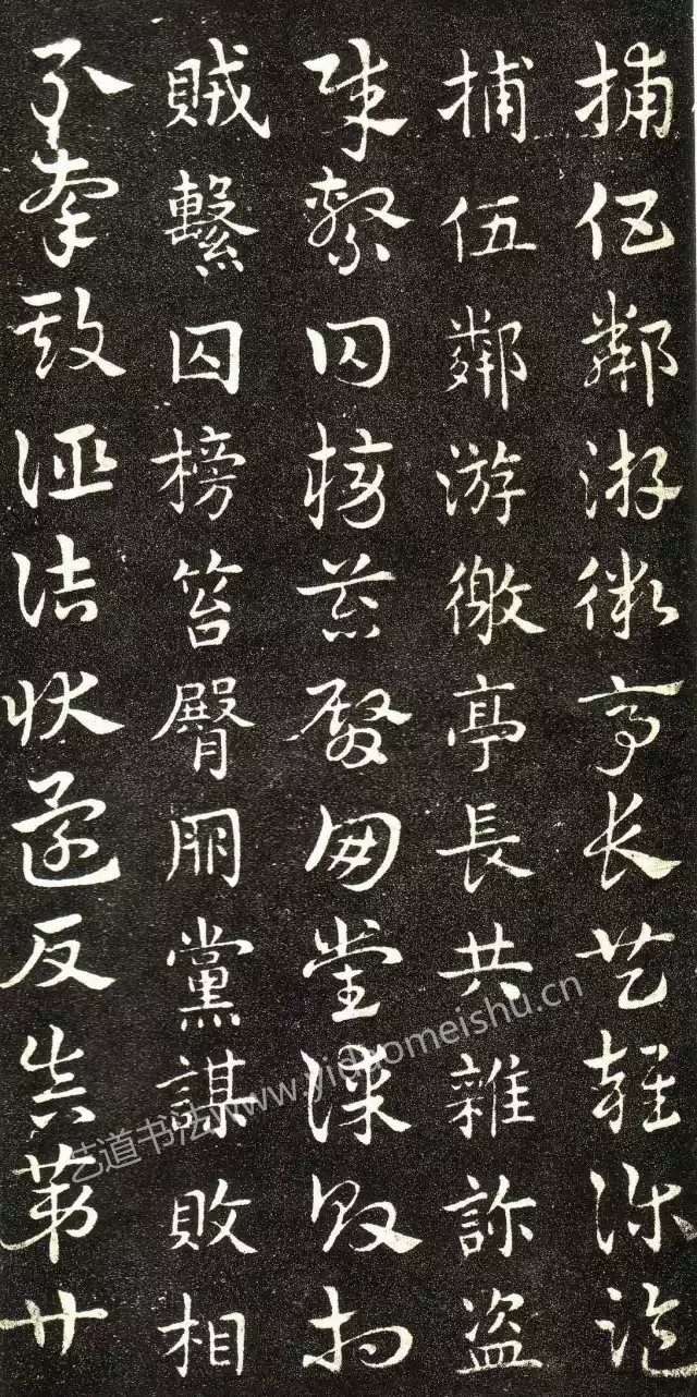 汉隶珍品《汉故雁门太守鲜于璜碑》,亦称《鲜于璜碑》,延熹八年(165)十一月立。1973年5月,天津武清县高村乡兰城村农民发现于村东苏家坟。碑高2.42米,宽0.81-0.83米,厚0.12米。碑阳字共十六行,满行三十五字;碑阴字共十五行,满行二十五字,共827字。此碑新出,文字基本完好,书法亦出自高手,为汉隶中的珍品。现藏天津市艺术博物馆。此碑结字宽扁丰厚,整齐划一,用笔瘦硬有力,骨肉雄浑,棱角